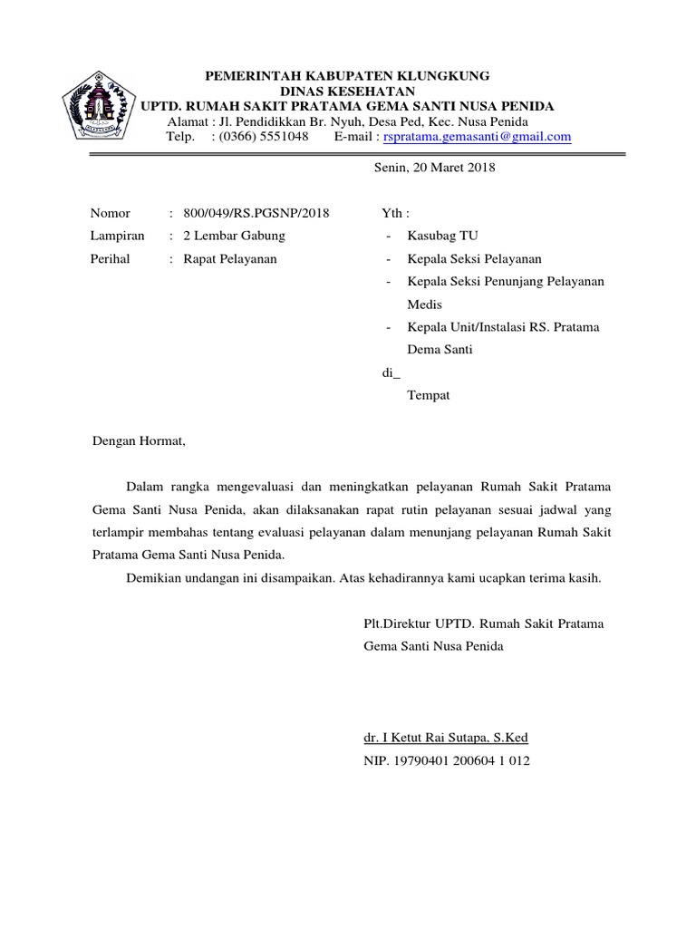 Contoh surat undangan rapat resmi. Semoga artikel ini bermanfaat bagi saudara. Surat undangan resmi merupakan surat yang dibuat oleh sebuah instansi atau lembaga legal, yang dikirimkan untuk lembaga lain ataupun perseorangan. Rapat dinas merupakan rapat resmi yang diadakan oleh instansi pemerintahan untuk melakukan koordinasi rutin di antara karyawan dinas. Berikut kami berikan contoh surat undangan resmi yang bisa dijadikan referensi dalam pembuatannya. Surat undangan adalah surat yang banyak digunakan oleh instansi agenda : Undangan rapat penyusunan dan perumusan pedoman lokakarya. Surat undangan non resmi adalah surat undangan yang dibuat perseorangan atau kelompok untuk mengundang seseorang dalam kegiatan yang tidak formal seperti undangan pernikahan, undangan contoh surat undangan rapat. Surat undangan rapat merupakan salah satu surat resmi yang dikeluarkan oleh organisasi, intansi, atau institusi. Dinas lingkungan hidup kota pontianak. Contoh surat undangan rapat instansi pemerintah. Untuk itulah surat undangan rapat sangat diperlukan. Mungkin itu sedikit gambaran mengenai contoh surat undangan yang akan kita pelajari pada artikel kali ini.